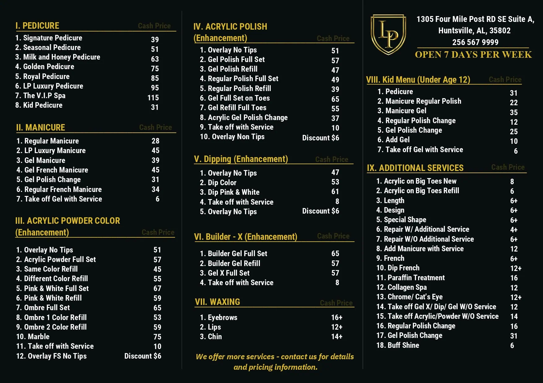 LP luxury Nail lounge is exactly what the name says! If a luxurious atmosphere is what you are looking for, well look no further, because this is where it's at! I always feel like a pampered queen when I come here! Luci took the best care of me and did a phenomenal job on my Pink glitter nails! She took extra time to clean up my cuticles and make sure each nail was the same size and shaped perfectly! Definitely visit, you won't regret it 10/10 Recommend! Also try the seasonal free slushies, so delicious 😋.